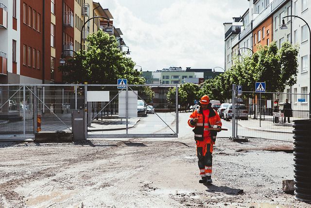 Infobric byggarbetsplats - Skjutgrind